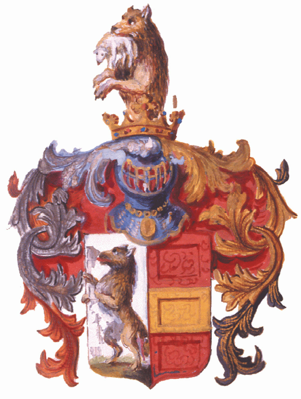 [1] Ein Antrag um "Wiedererhebung" des Johann Hieronymus Müller in den Adelsstand bzw. um Bestätigung seiner Zugehörigkeit zu dem Niederlausitzer Adelsgeschlecht v. Mühlen, insbesondere die Originalurkunde Kaiser Leopolds I. vom 20. März 1683, läßt sich weder aus den Reichsregistern noch aus den Reichstaxbüchern von 1683-1684 nachweisen. Mitteilung des österr. Staatsarchivs, Abt. Haus-, Hof- und Staatsarchiv, in Wien vom 10.3.1970. Die Urkunde befindet sich im Familienarchiv (im Besitz von Ulrich Frhr. v. Mühlen).